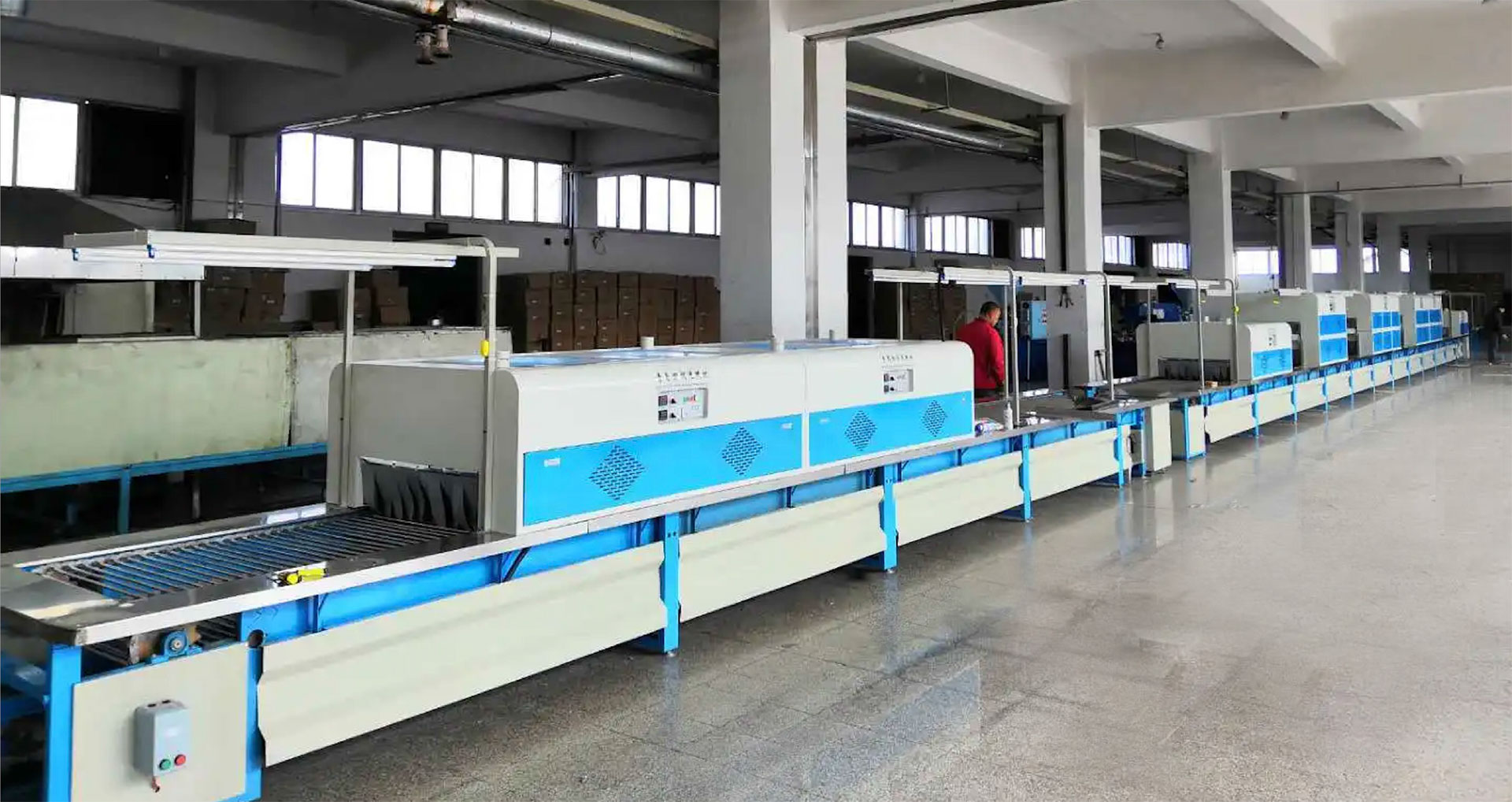 恒温节能贴合成型流水线两条; 环保照射处理流水线两条。